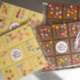A 4 inch Square bar of chocolate filled with fudge chunks or crunchy chunks, Blonde or Milk The Kids will love them